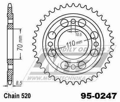 Rozeta ocelová (převodník) 0247-36zubů MTZ - Honda CBX250R + CM400T / 81-83 + CB400N / 81-83 + CB250N / 78-82 + CM250TB Custom / 82-84 95-0247-36