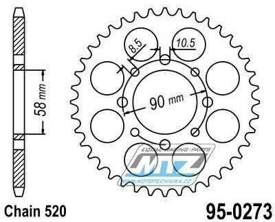 Rozeta ocelová (převodník) 0273-43zubů MTZ - Honda CMX250C / 96-16 + CMX250CD Rebel (USA) / 96-16 + CA125S Rebel / 95-01 + CMX250 Rebel / 00 + VT125C Shadow / 99-07 + XL125V Varadero / 01-13 + KTM 125 95-0273R-43