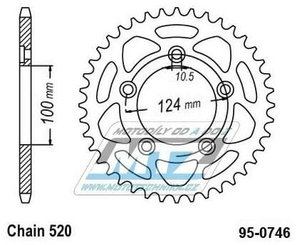 Rozeta ocelová (převodník) 0746-43zubů MTZ - Ducati 400 Scrambler Sixty2 + 797 Monster + 800 Scrambler Cafe Racer + 800 Scrambler + 821 Monster + 899 Panigale + 959 Panigale + 1100 Scrambler 95-0746-43