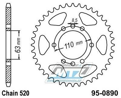 Rozeta ocelová (převodník) 0890-45zubů MTZ - KTM 125 Duke ABS + 125RC ABS + 125RC + 200 Duke ABS + 200RC + 390 Adventure + 390 Duke ABS + 390 RC + 390 RC R + Husqvarna 401 Svartpilen + 401 Vitpilen 95-0890-45