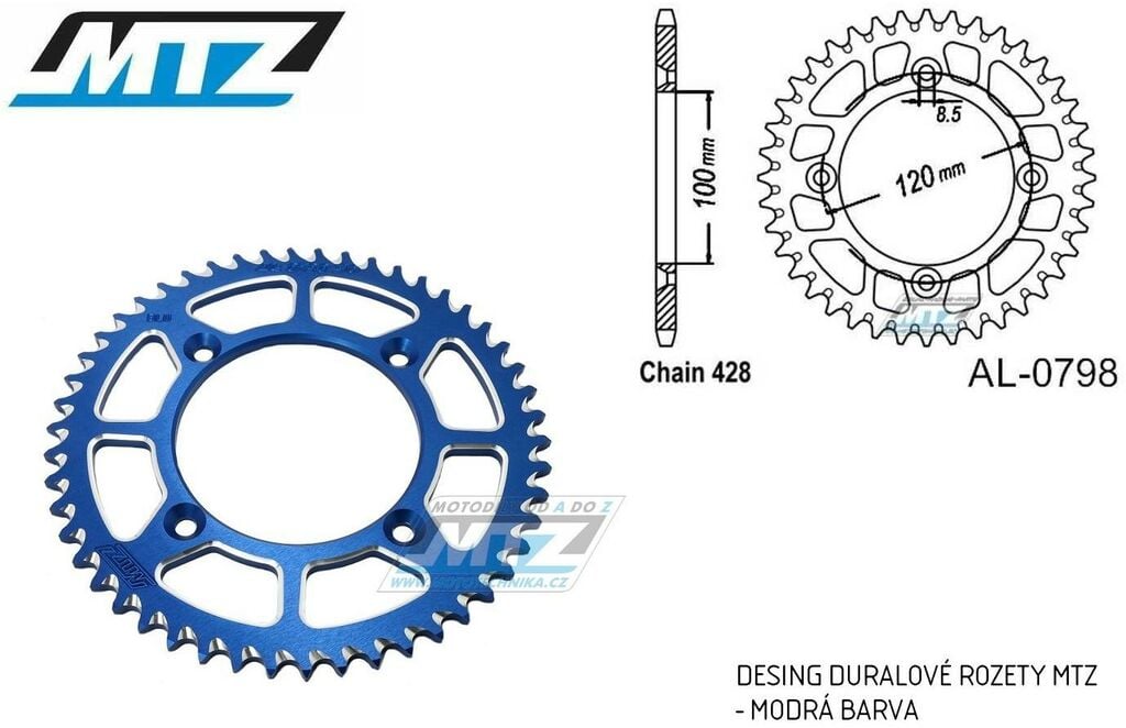 Rozeta řetězová (převodník) Dural 0798-48zubů MTZ modrá - Suzuki RM80 / 83-01 + RM85 / 02-20 + Yamaha YZ80 / 93-01 + YZ85 / 02-20 + Beta RR125 / 06-12 AL-0798-48-E3