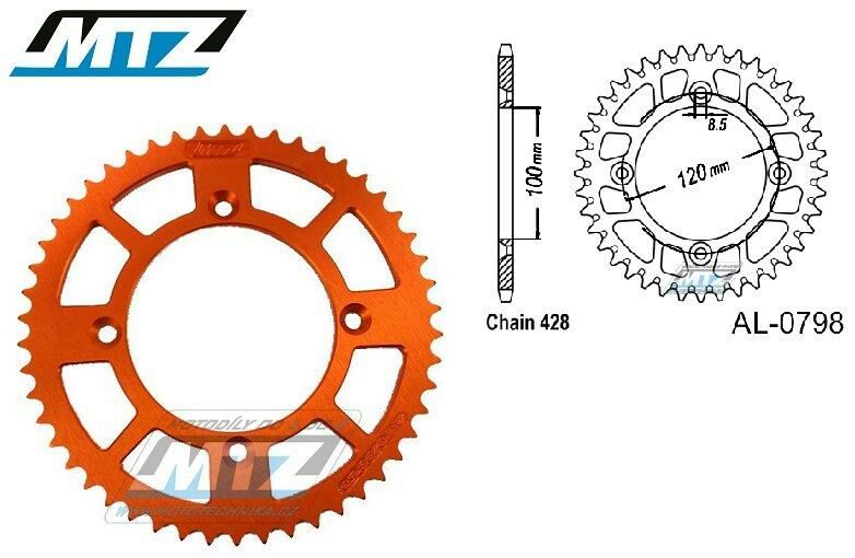 Rozeta řetězová (převodník) Dural 0798-50zubů MTZ oranžová - Suzuki RM80 / 83-01 + RM85 / 02-20 + Yamaha YZ80 / 93-01 + YZ85 / 02-20 + Beta RR125 / 06-12 AL-0798-50-E7