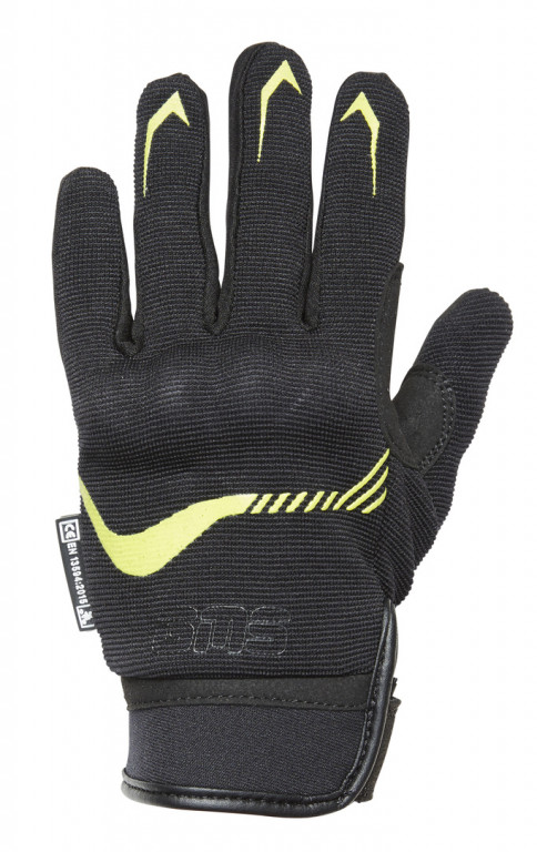 Krátké textilní rukavice se strečového materiálu se skvěle přizpůsobí pohybům ruky, takže neomezují jezdce. Díky materiálu, ze kterého jsou vyrobené, jsou dobře prodyšné. Všité chrániče a zesílení poskytují dostatek ochrany v případě pádu.