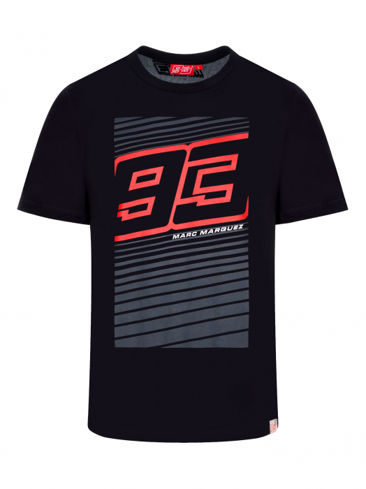 - Černé tričko Marc Marquez s neonovým logem MM93 v červené barvě.