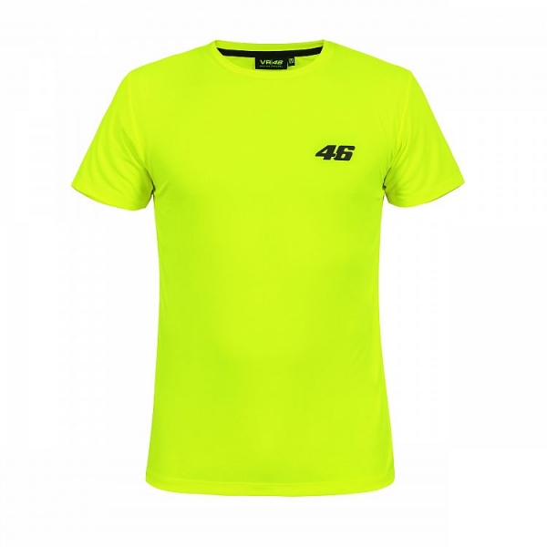 Tričko z polyesteru s technologií VR-DRY patřící do exkluzivní kolekce VR46 Core. Na hrudi malý barevný znak 46 a malá kapsa na pravé straně